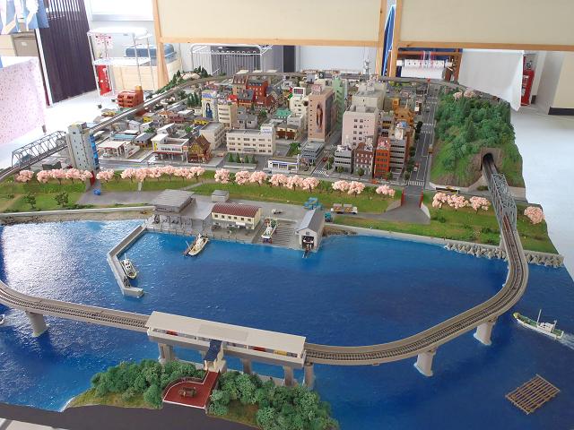 ジオラマは1/150スケールの1.8×2.8mの大きさで、範囲は町の駅前から山田湾までです。