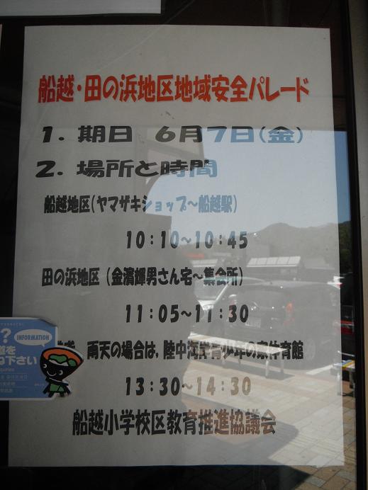 6月7日金曜日、船越小学校の地域安全パレードがあります。