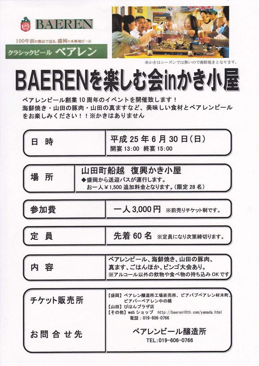 山田では、6月30日(日)に、「BAERENを楽しむ会inかき小屋」が開催されます