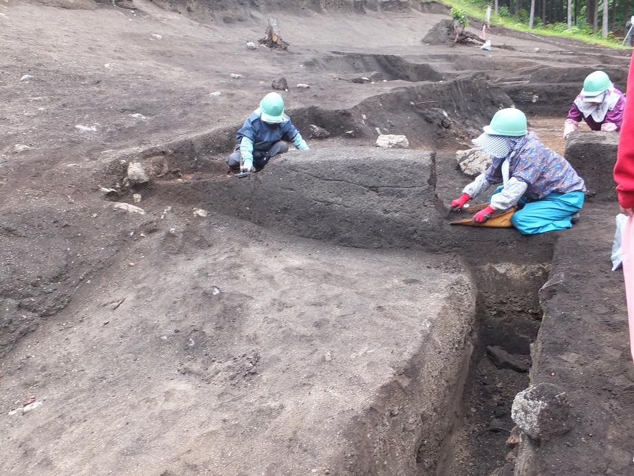 また、同じ場所に縄文中期頃の住居跡が重なって見つかりました。