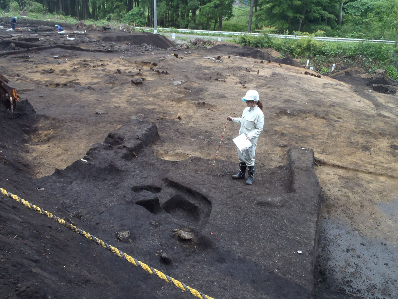 間木戸遺跡は古代に鉄作りのムラがあった事が確認されていますが、さらにそれより前、縄文時代にも繰り返し住居を建て直して暮らしていた跡が見つかっています。