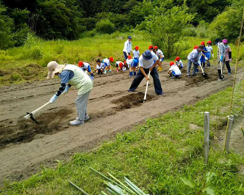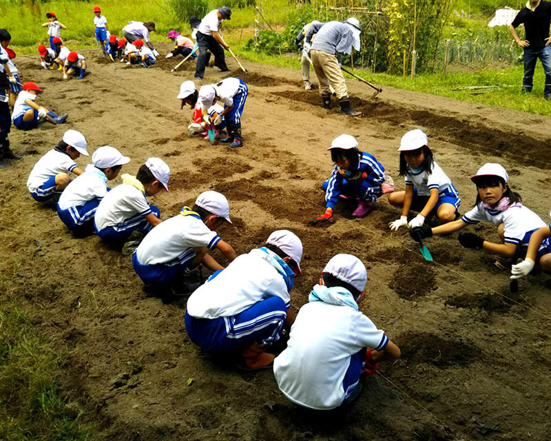 山田南小の2年生の皆さんと一緒に畑を耕し種まきしながら、勉強と運動と世代交流ができちゃう楽しいイベント