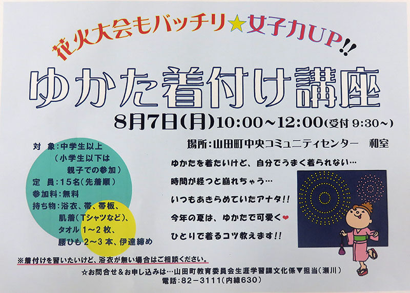 ということで「ゆかた着付け講座」のおしらせです