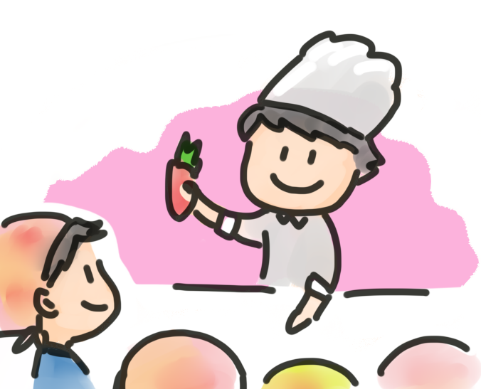店:福士シェフに「いただきます」の意味を説明して頂いて、みんなで納得。