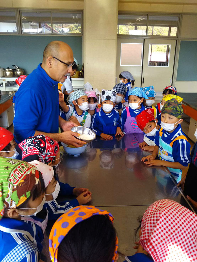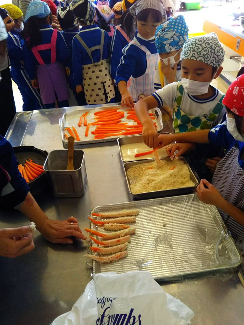 今回も「やまだ観光物産館とっと」の店長が参加、南小の2年生の皆さんと一緒に料理を作ってきました。