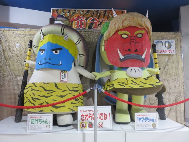 たけちゃんヤマダちゃんは節分の日まで鬼の姿に扮装しています。(1月29日はお出かけで留守になります)