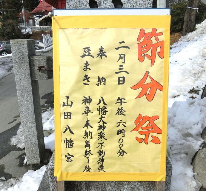2018年01月31日 もうすぐ節分です 今日で1月は終わりです。月日の移ろいは早いものですね。 さて今週末の2月3日(土)、八幡様で毎年恒例の節分が行われます。 お餅の他に、お菓子や野菜が飛び交ったり、お酒や魚が当たったりするこの豆まき、今年はどんな風でしょう( *´艸`) 18時より神事やお神楽奉納が始まります。 皆さん、温かい服装でお越しください(*^▽^*)/ (和) 「お知らせ」カテゴリの最新記事 < 前の記事次の記事 > コメント コメントフォーム 名前 コメント 評価する リセット リセット 顔 星 投稿する 情報を記憶