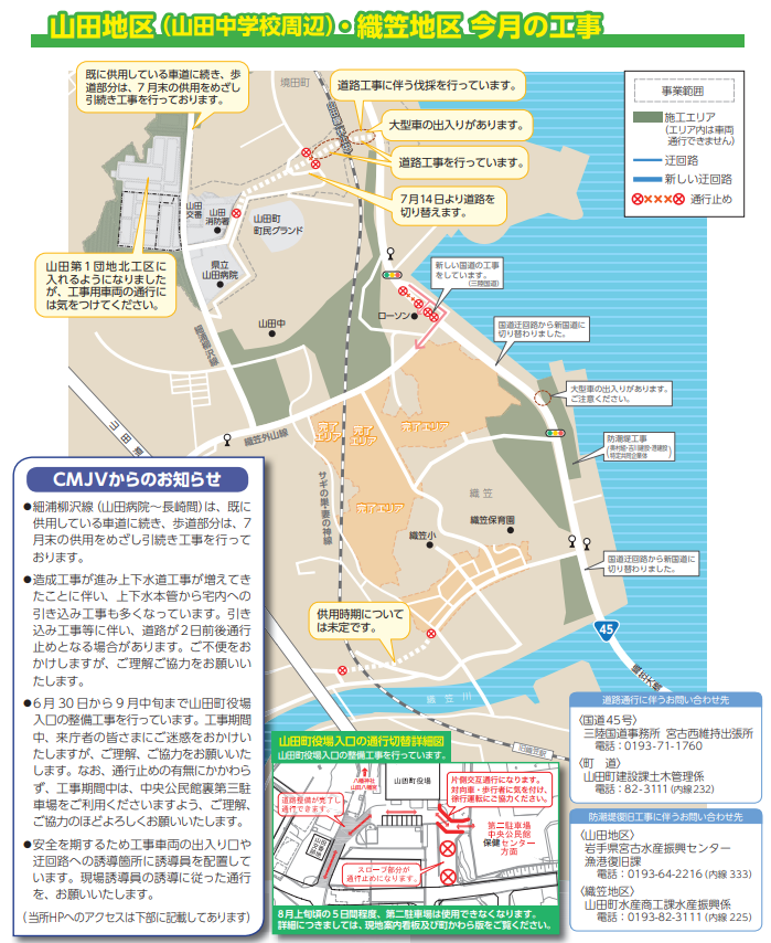 山田町CMJVさん発行「工事かわら版7月15日号」のお知らせです。