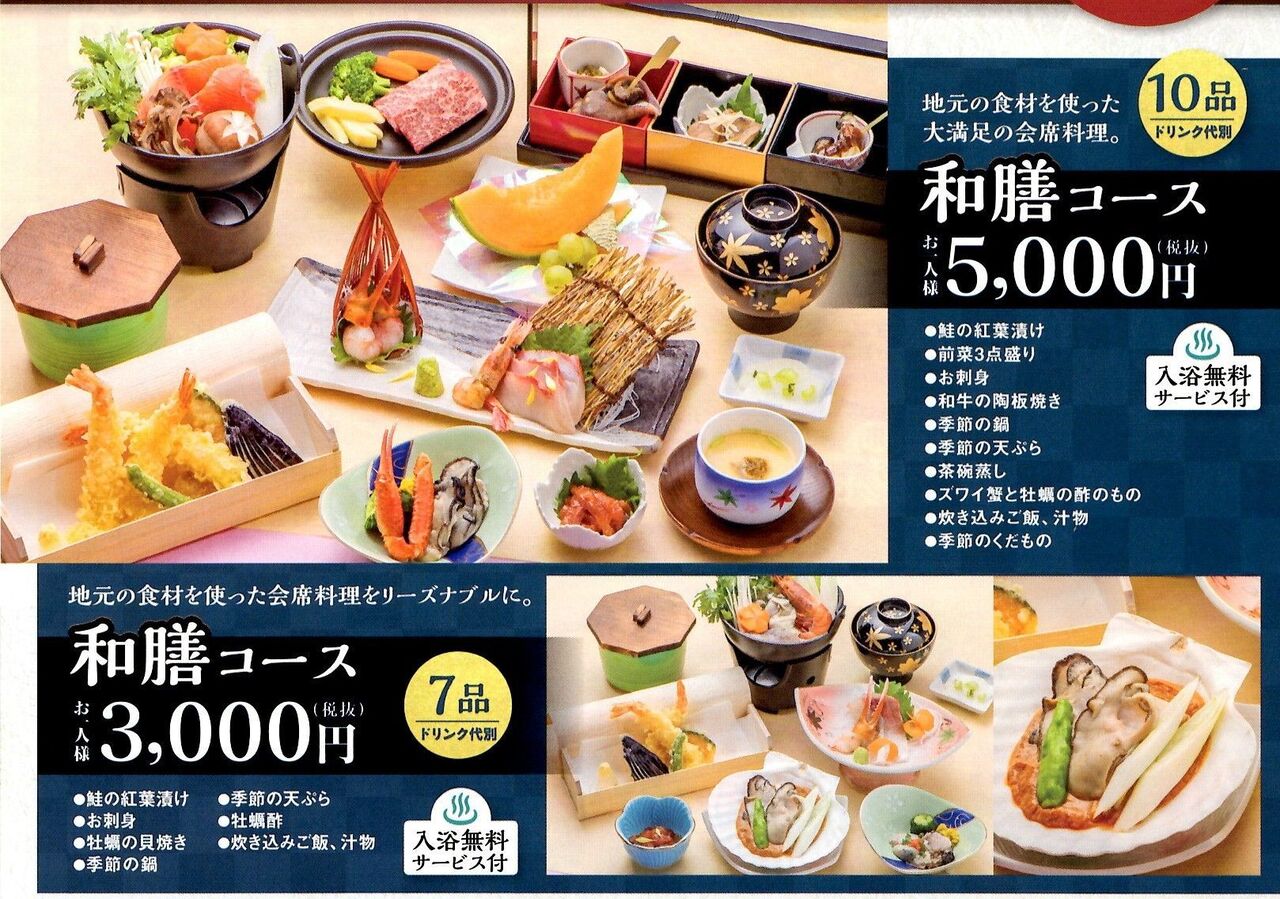 2018年11月18日 湯らっくす宴会メニュー 早いもので今年も1ヶ月半を切りましたね。 いよいよ忘年会シーズンが到来です! うみねこ温泉湯らっくすさんでは、宴会プランが登場しました。 和食膳コース 中華フルコース ※写真は6人前です。 和洋中が楽しめるオードブルコース また、ご法要コースもあります。 基本的にお1人様5,000円ですが、それぞれ3,000円のパターンもあり、ご予算に応じてお時間・お料理のご相談に応じます。 また、どのコースにも入浴無料サービスが付きます。 お風呂に入りつつのご宴会、ぜひどうぞ(^o^)/ (和) 「日記」カテゴリの最新記事 < 前の記事次の記事 > コメント コメントフォーム 名前 コメント 評価する リセット リセット 顔 星 投稿する 情報を記憶
