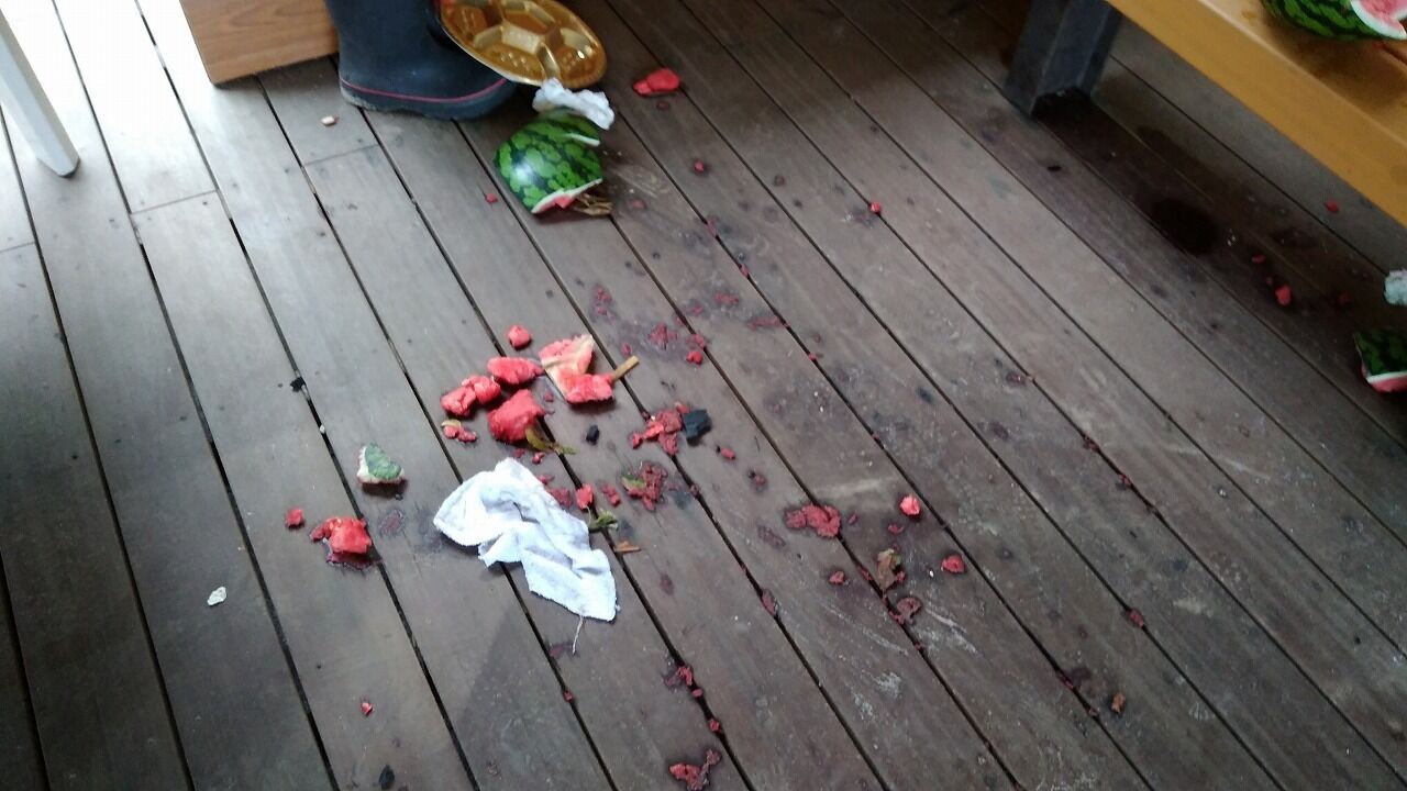 スイカ割りでもされたのか、砂浜にも破片がありました。