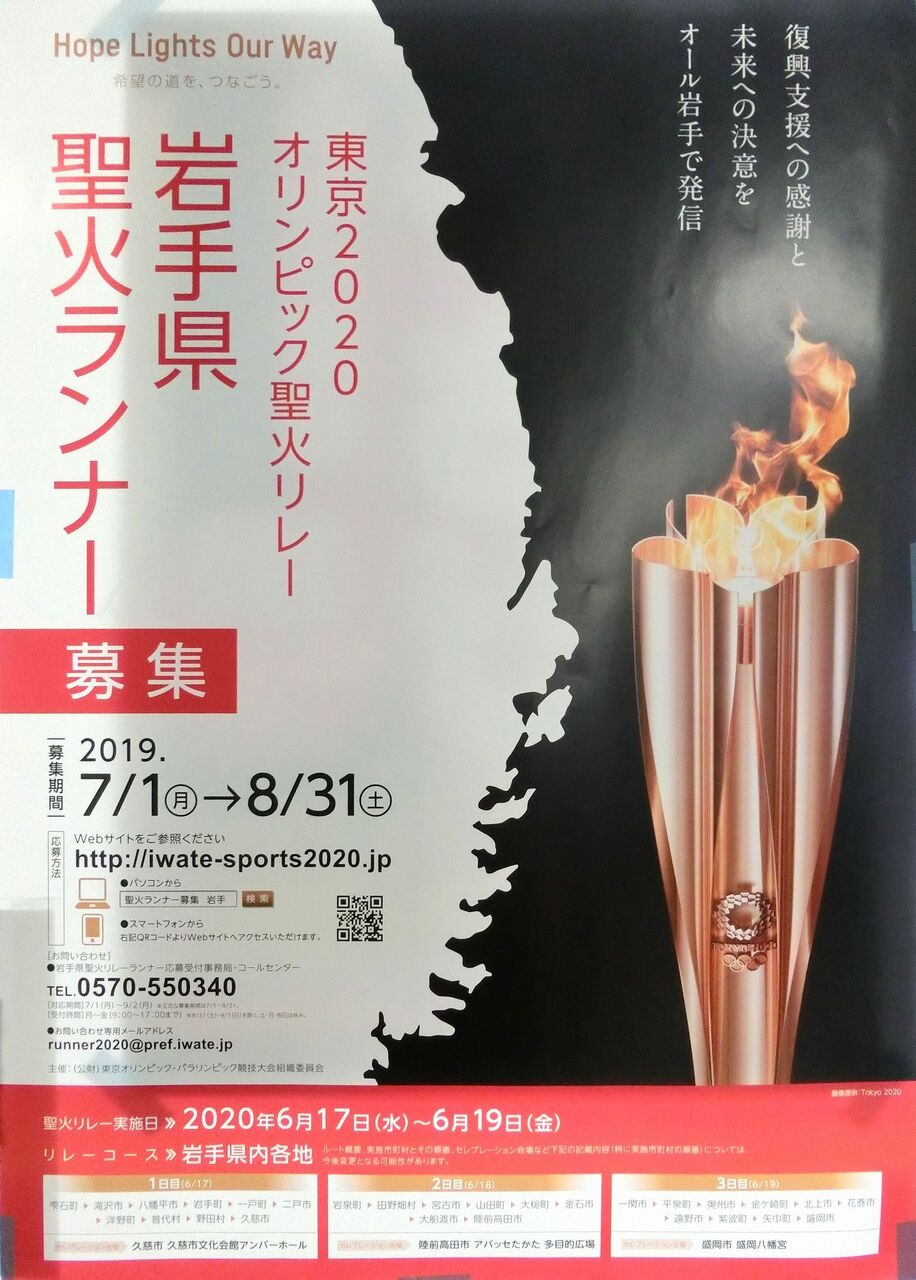 オリンピック聖火リレーの岩手県ランナーの応募期間は今月末までです。