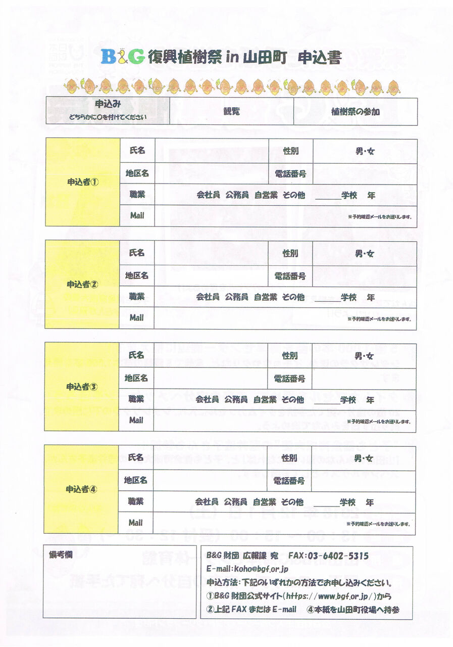 「B&G復興植樹祭in山田町」が以下の通り開催されます。