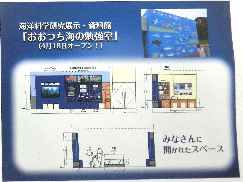 来月には海洋科学研究展示・資料館として「おおつち海の勉強室」がオープンします。ぜひお越しください。