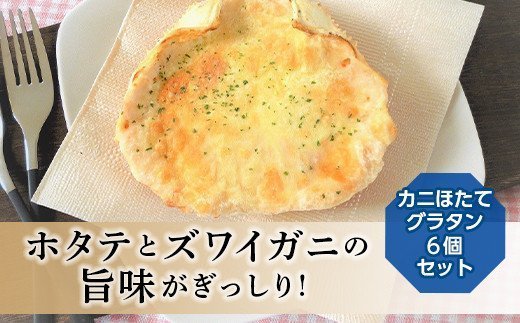 【ほたてグラタンのホワイトソースに本ズワイガニの旨みを閉じ込めて香り良く焼き上げました】