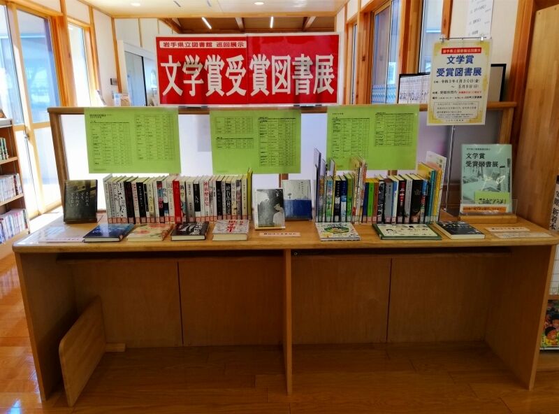 町の図書館ではただいま「岩手県立図書館巡回展示 文学賞受賞図書展」を開催中です。