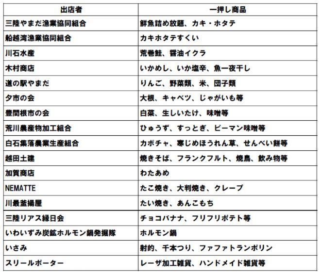 2021年11月29日 山田まるっと産直まつり開催のお知らせ 「山田まるっと産直まつり」開催のお知らせです。 令和3年12月5日(日) 午前9時30分~午後1時30分 場所:山田魚市場横特設会場 (山田町境田町) 山田町の特産品を販売。 来場者には豪華景品が当たる抽選会も開催します。 出展者一覧 ※入口での検温及び氏名・連絡先等の記載の協力をお願いします。 ※マスク着用及び手指消毒をお願いします。 ※ソーシャルディスタンスの確保にご協力ください。 お問い合わせ 山田町水産商工課観光振興係 0193-82-3111(内線223、224) (千) 「お知らせ」カテゴリの最新記事 < 前の記事次の記事 > コメント コメントフォーム 名前 コメント 評価する リセット リセット 顔 星 投稿する 情報を記憶