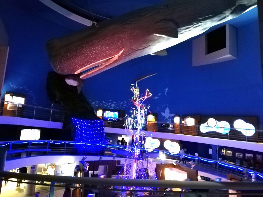 ライトアップされた鯨館、館内ではサンタさんと写真を撮ったりガチャを引いたりして大盛況でした。