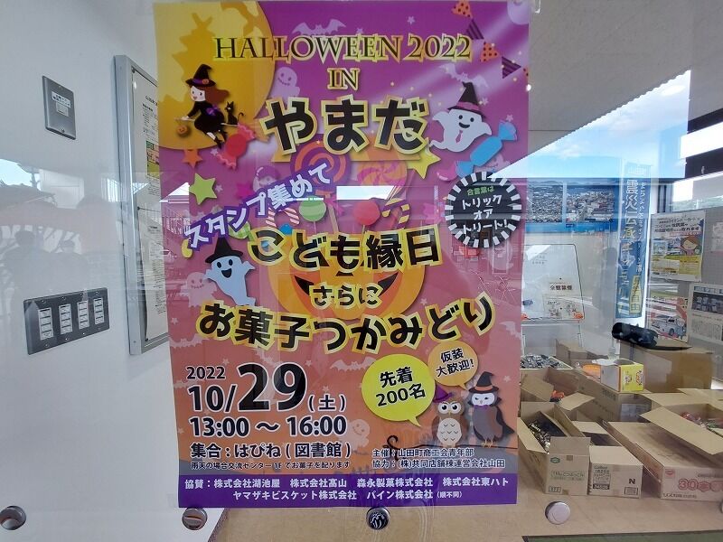 山田駅となり、図書館「はぴね」がスタンプラリーの受付でした。