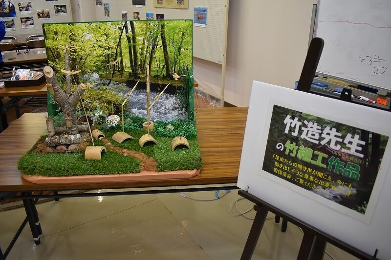 竹で作った虫を展示
