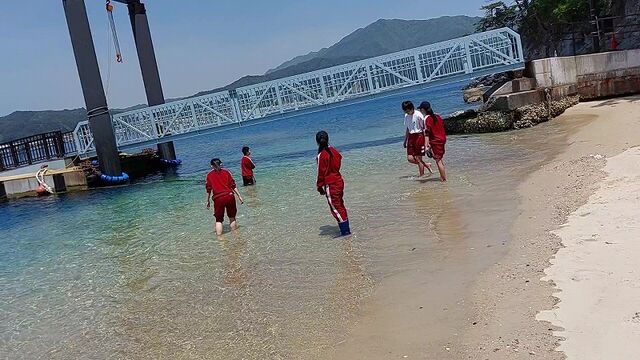 段々に、我慢できなくて腰のあたりまで海に入ってしまった子もいました。