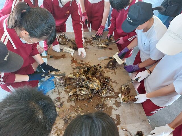 今年は、貝毒のためホタテの代わりにカキを綺麗にしてもらいました。