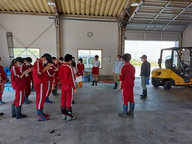 初めて見る養殖の説明を興味津々で静かに聞いていました。