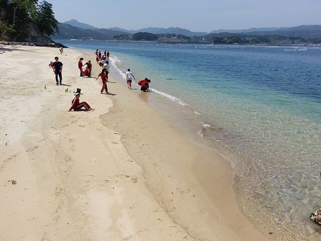 自由行動です。裸足になって波打ち際で遊ぶ子や砂浜でまったりしている子。