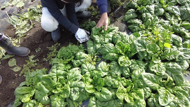 今日の収獲できる野菜は、ミニ白菜、カブ、人参、寒締めほうれん草の4種類です。