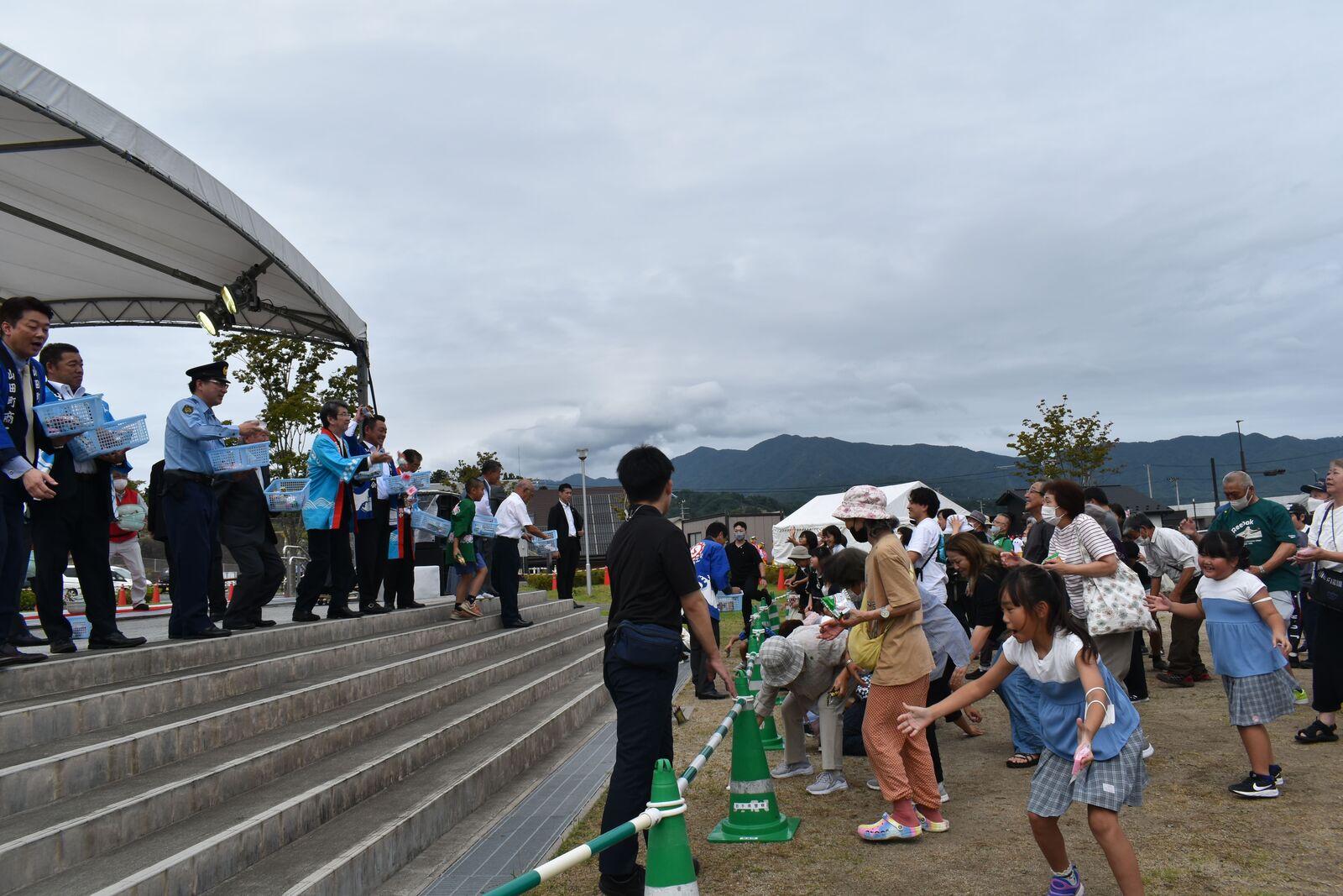 山田町恒例の恵比寿まきです。たくさんのお菓子などがまかれました。