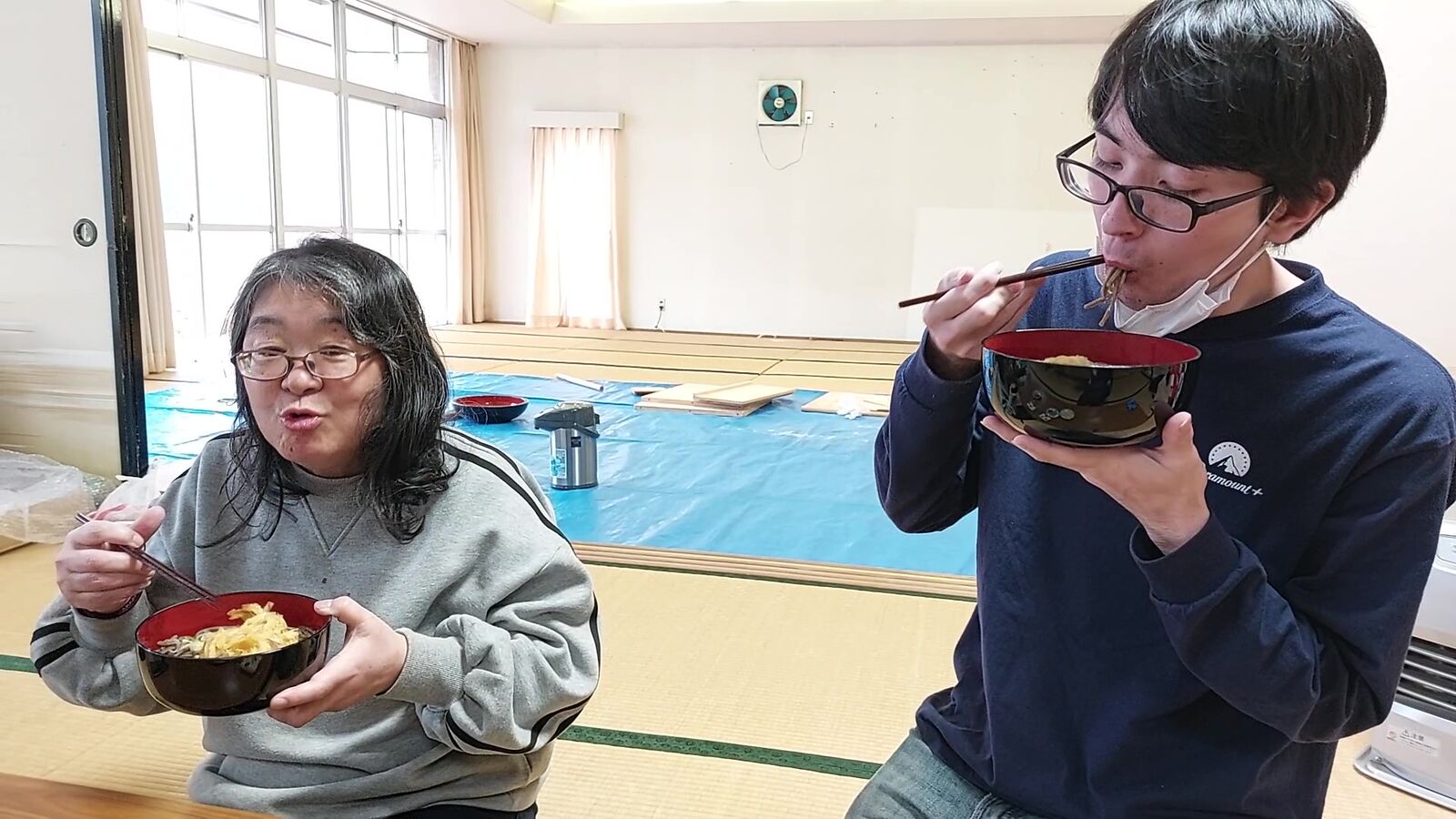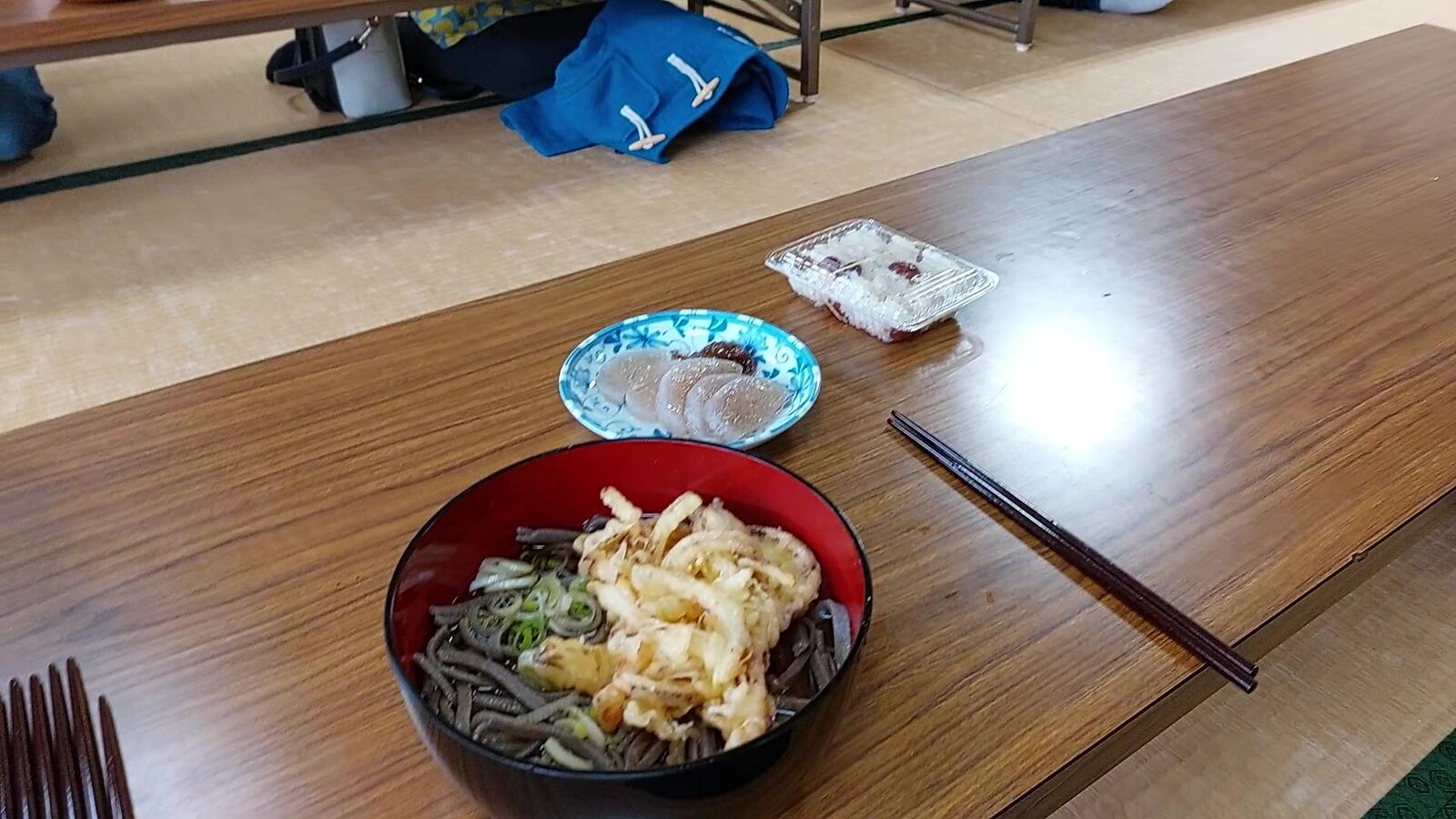 美味しい汁と野菜のかき揚げを作ってもらって、自分の打ったそばを美味しく頂きました。