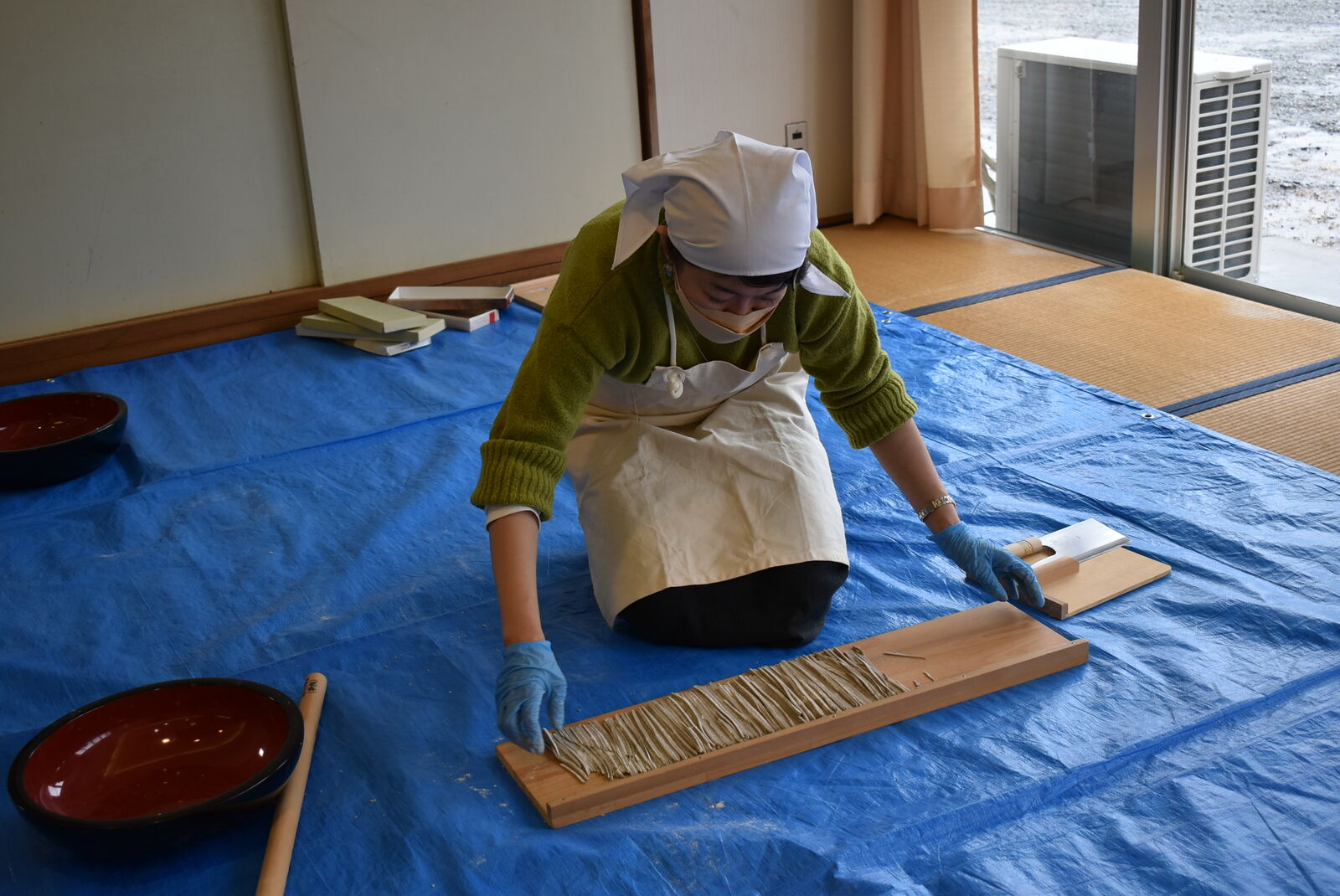 さて、いよいよそば打ちの始まりです。あず子先生に説明を受けます。