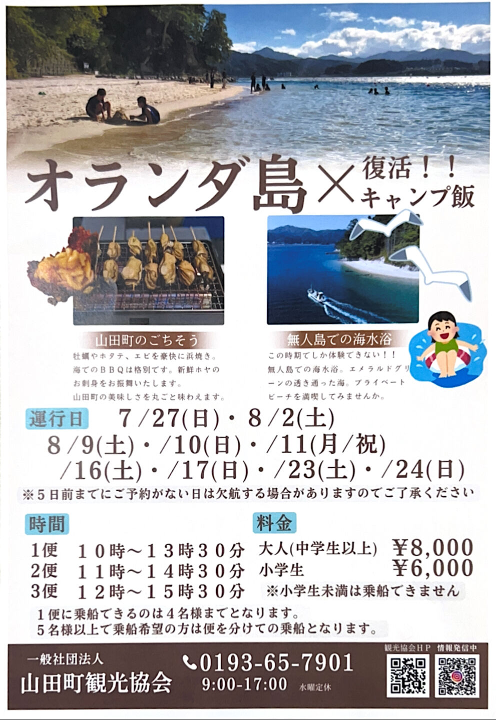 オランダ島で海水浴をしながら山田の味覚を楽しめる『オランダ島キャンプ飯』を開催します~~!