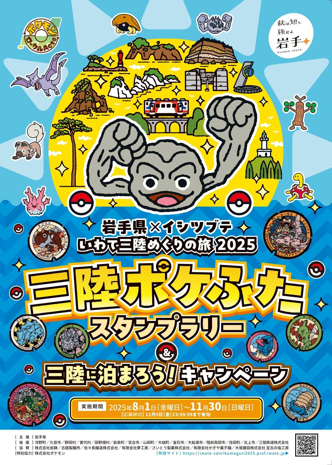 『岩手県×イシツブテいわて三陸めぐりの旅2025三陸ポケふたスタンプラリー』が始まります!