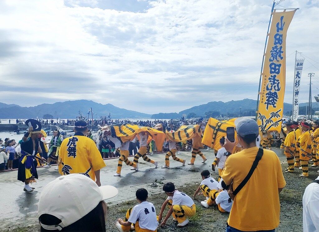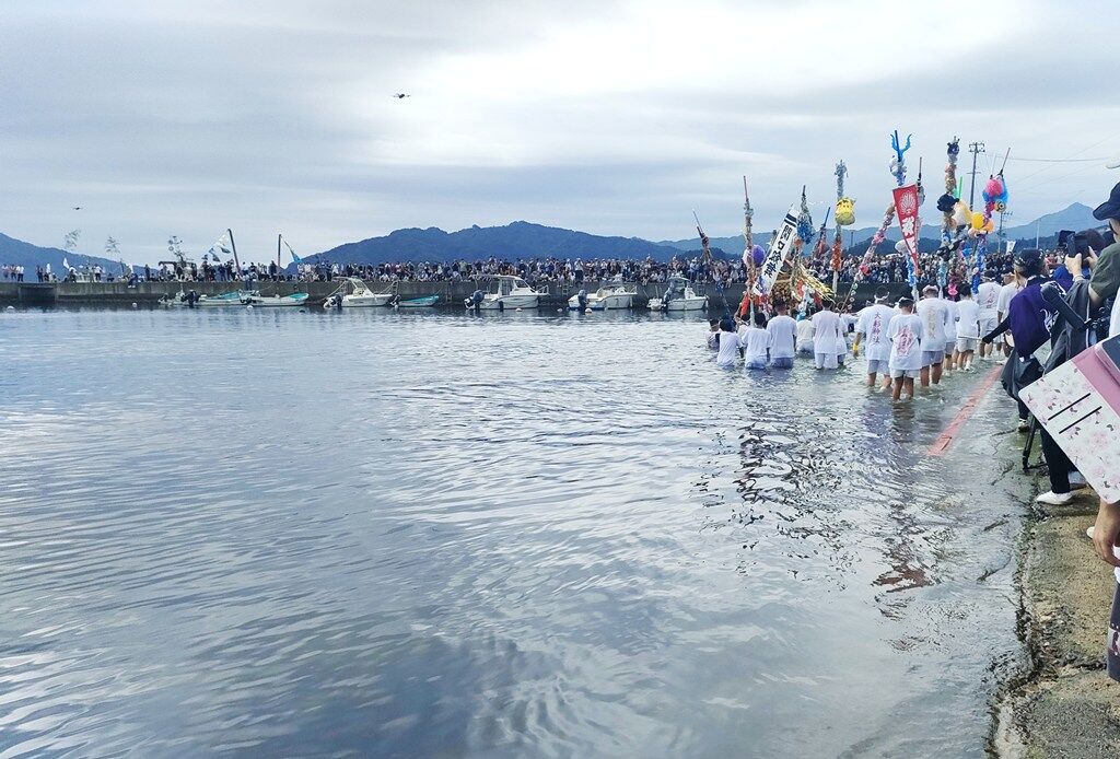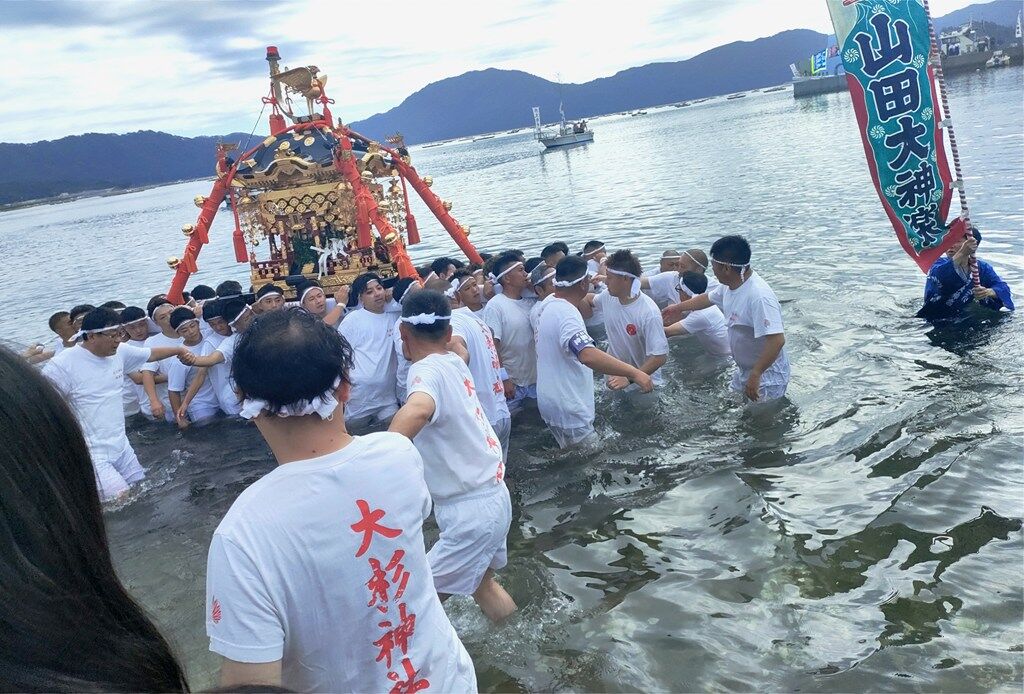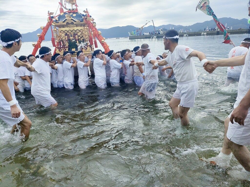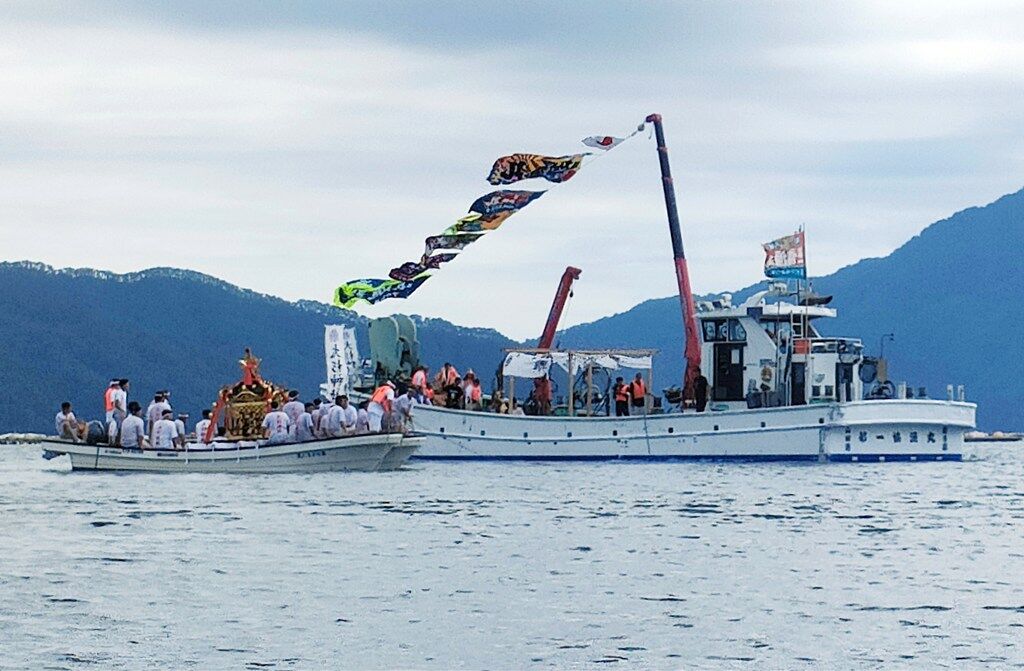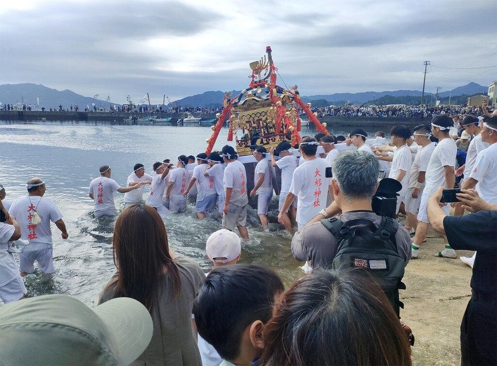2025年09月20日 2025 山田祭り 大杉神社例大祭 海上渡御 2025年9月15日は大杉神社例大祭が執り行われました。8時半ごろにはすでに海岸に向かうお神輿を見つけて慌てて追いかけました。岸壁ではすでに場所取りが始まっています。神事が執り行われます。ここからスマホ片手に追いかけますドローンも飛んでます。お父さんに抱っこされて特等席。暴れている間に、神輿を乗せる準備。塩撒きの方たち。びっしょり。旗担ぎも頑張って後を追います小船に移ります。ドローンも。曳舟に移ります。山田湾の明神様へ向かっていきました。境田寅舞川向十二支八幡大神楽道の駅やまだでの様子は後でアップします。お楽しみに。(千)こちらも観てね。 タグ :#まつり#お祭り#岩手県山田町#山田の秋祭り#大杉神社例大祭#海に入るお神輿#曳舟#明神崎#明神様#門ぶち 「お祭・歳時記」カテゴリの最新記事 < 前の記事次の記事 > コメント コメントフォーム 名前 コメント 評価する リセット リセット 顔 星 投稿する 情報を記憶