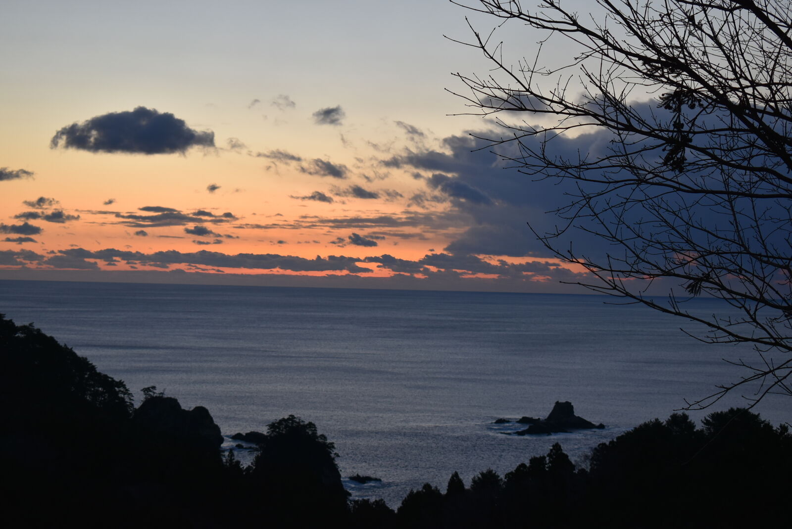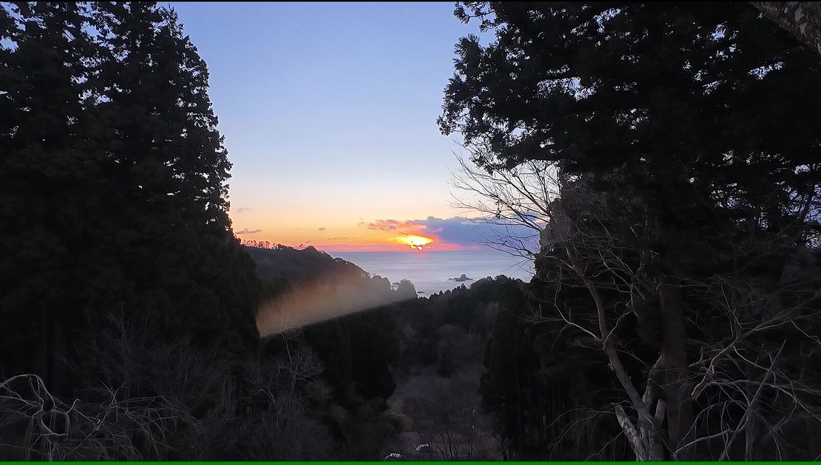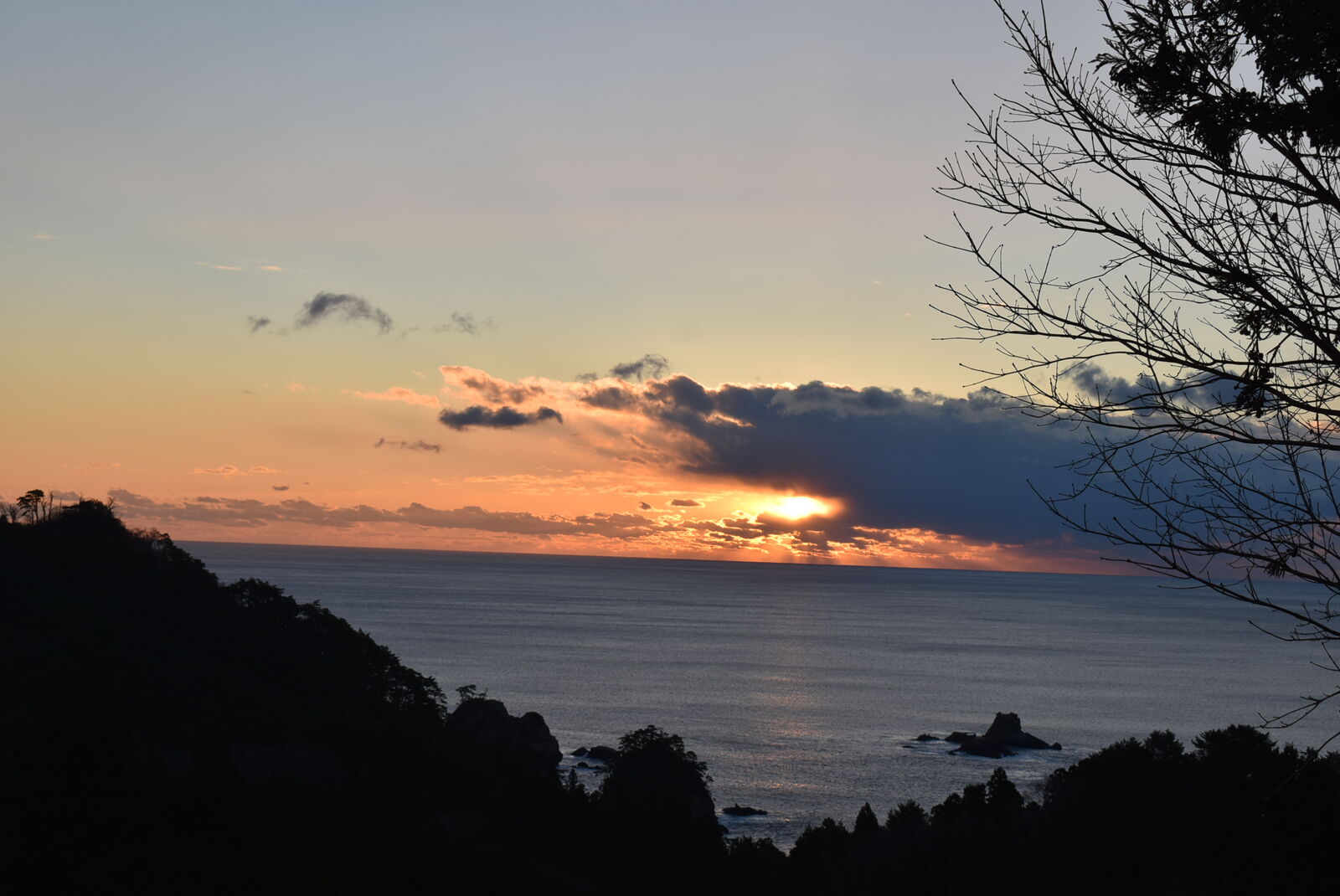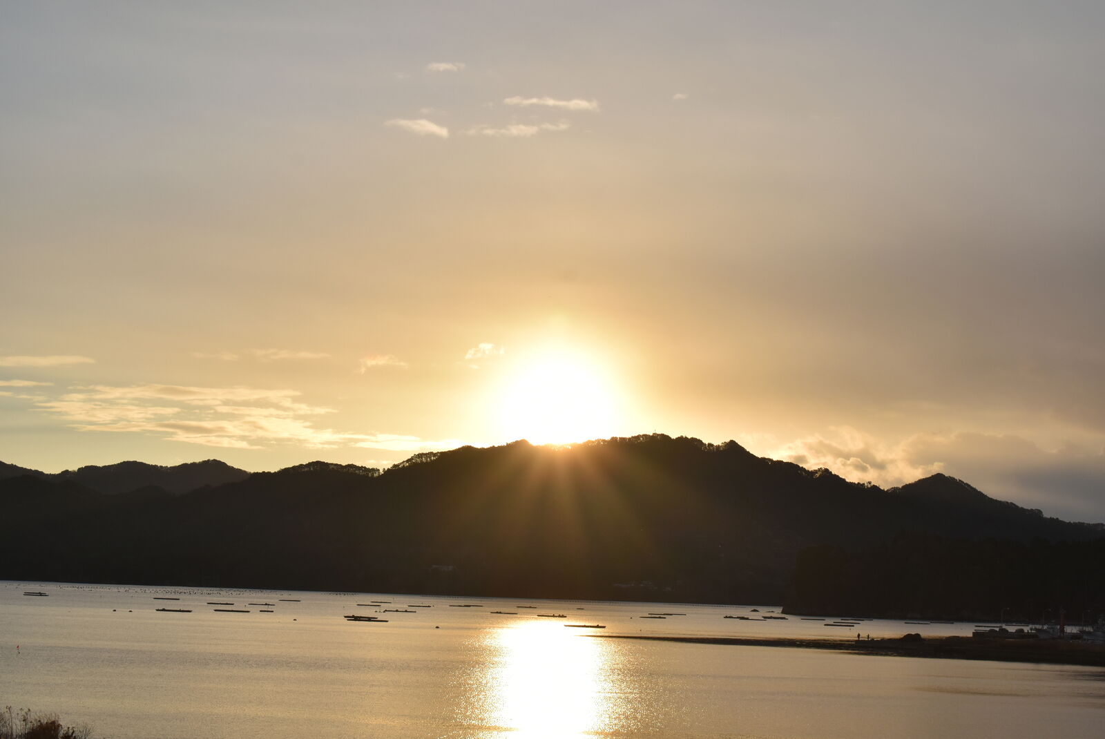 織笠細浦から山田湾に昇る初日の出です。ここまで移動して間に合いました。
