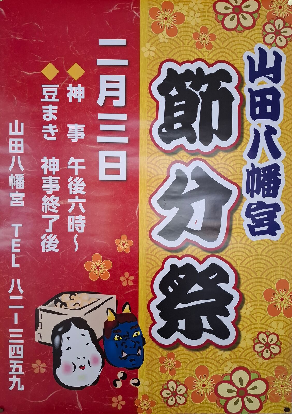 2026年01月21日 ~節分祭のお知らせ~ 山田八幡宮で『節分祭』が開催されます🫘開催日:令和8年2月3日(火)時 間:神事 午後6:00~ 豆まきは神事終了後となります。お問い合わせ先➤山田八幡宮 0193-82-3459寒いことが予想されますので、暖かい格好でお越しください。昨年の様子はこちらからご覧いただけます👀 「お知らせ」カテゴリの最新記事 < 前の記事次の記事 > コメント コメントフォーム 名前 コメント 評価する リセット リセット 顔 星 投稿する 情報を記憶