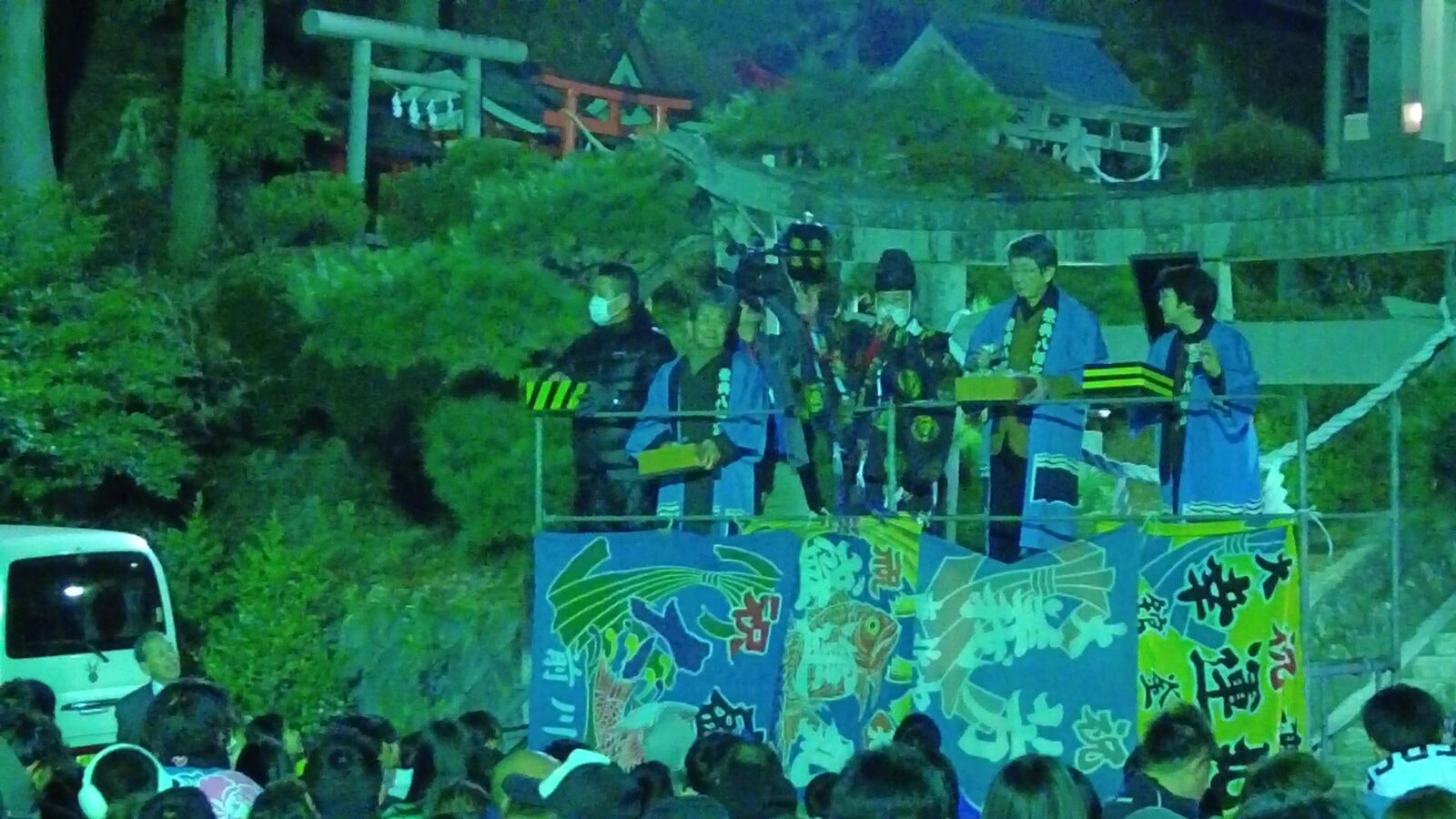 午後6時に神事が始まりました。郷土芸能の団体の代表の方や神社関係者の方が