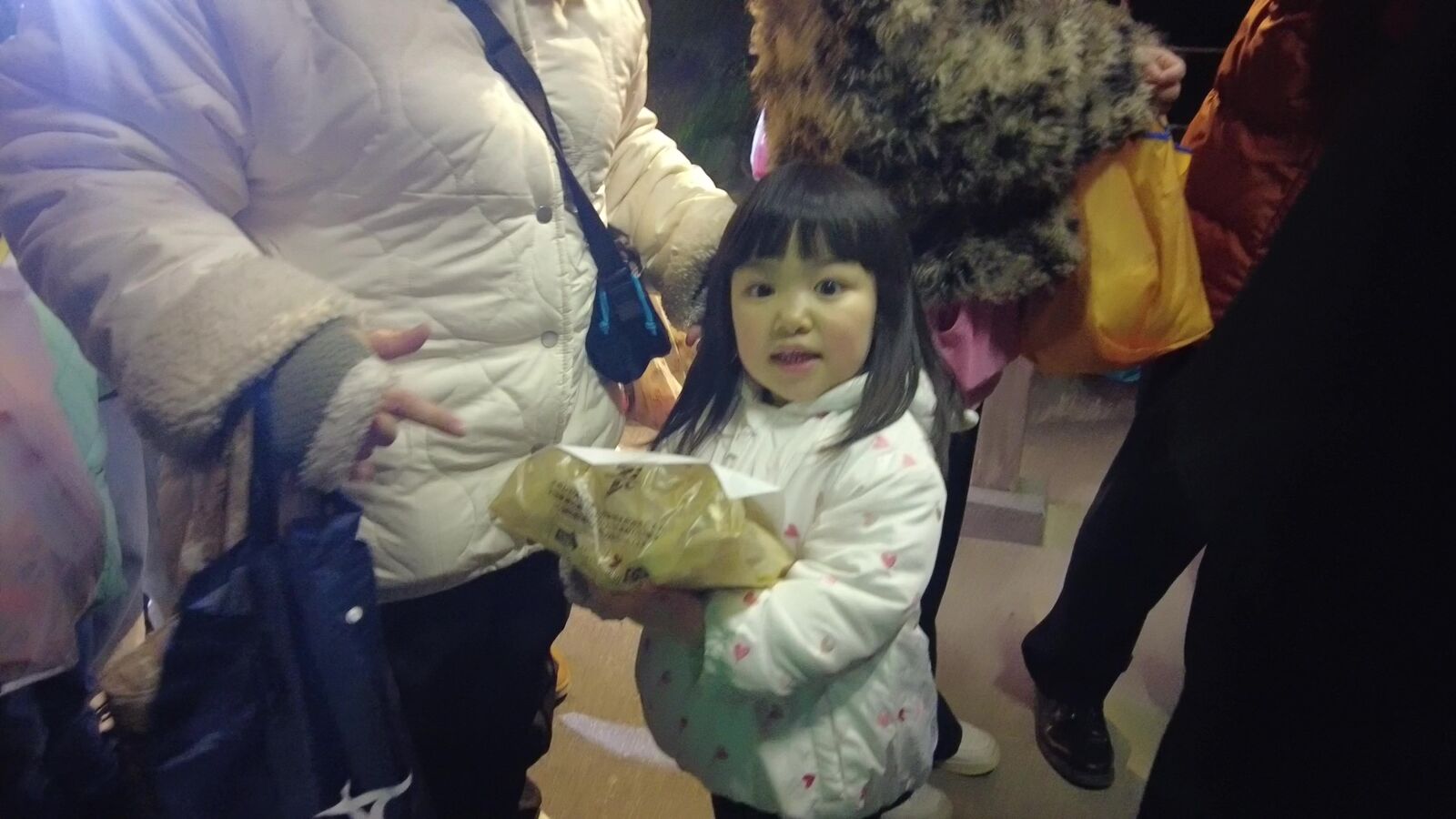 恵方巻とお菓子が当たって嬉しそう。