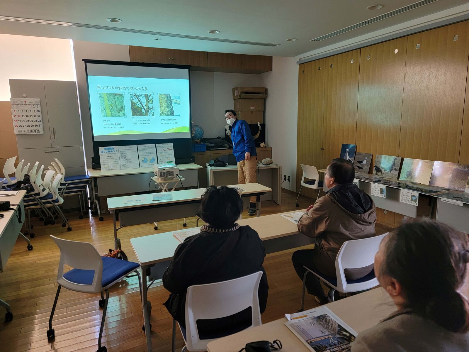 まずは、野鳥の事をちょっと勉強しましょう。鯨館の道又さんが講師をしてくれ