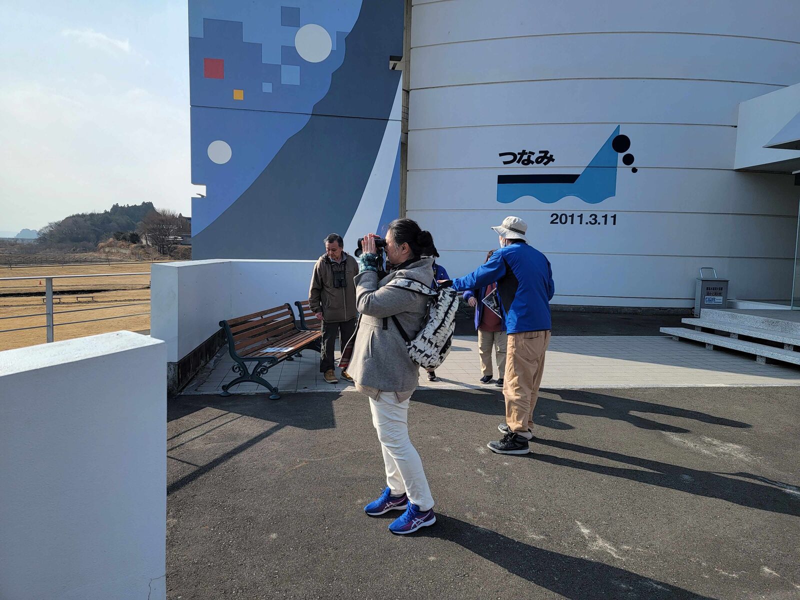 外に出て、双眼鏡の設定の仕方を教わります。バードウォッチングには必須です。
