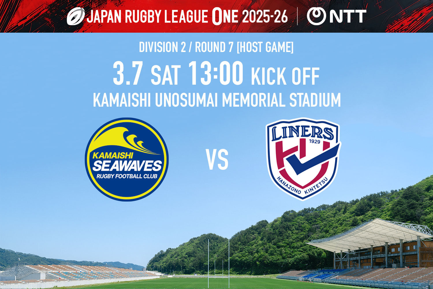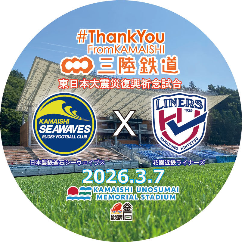 3月7日(土)に釜石市の釜石鵜住居復興スタジアムにて日本製鉄釜石シーウェイブスが東日本大震災復興祈念試合を行います!