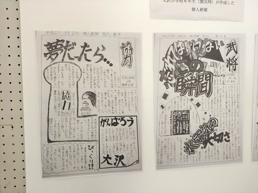 2026年03月03日 「海よ光れ」 道の駅やまだ「おいすた」で展示中 「未来につなぐ東日本大震災の記録」~~ 海よ光れ ~~旧大沢小学校の学校新聞「海よ光れ」。震災後から抜粋して展示しています。場所は道の駅やまだ「おいすた」の情報棟内です。3月中旬ごろまでの展示予定なそうです。どうぞお立ち寄りください。(千) タグ :#大沢小学校#新聞#おいすた#展示#海よ光れ 「お知らせ」カテゴリの最新記事 < 前の記事次の記事 > コメント コメントフォーム 名前 コメント 評価する リセット リセット 顔 星 投稿する 情報を記憶
